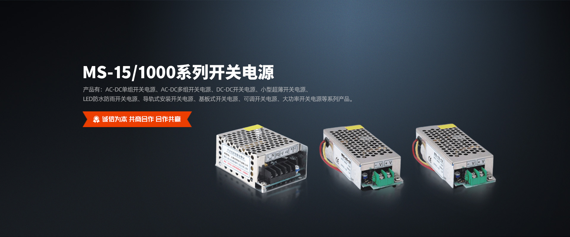 上海共同電氣有限公司主營(yíng)產(chǎn)品有:AC-DC單組開關(guān)電源、AC-DC多組開關(guān)電源、DC-DC開關(guān)電源、小型超薄開關(guān)電源、LED防水防雨開關(guān)電源、導(dǎo)軌式安裝開關(guān)電源、基板式開關(guān)電源、可調(diào)開關(guān)電源、大 功率開關(guān)電源等十幾大系列產(chǎn)品。公司自成立以來,就積極推進(jìn)以質(zhì)量求生存,以科學(xué)技術(shù)求發(fā)展,以規(guī)模效益的發(fā)展戰(zhàn)略,內(nèi)抓質(zhì)量管理,外拓市場(chǎng),建立了完整的質(zhì)量保證體系和完善的售后服務(wù)隊(duì)伍。